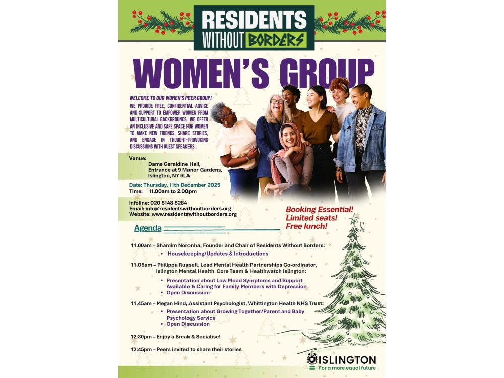 A monthly women's support group every second Thursday of the month. We invite guest speakers who are peers to share their stories, challenges and achievements. We organise trips to the theatres and museums. This group is highly popular. Booking essential!
